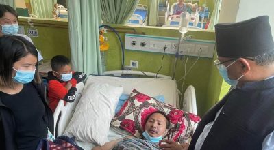 पूर्वजनमुक्ति सेनाका सेक्सन कमाण्डरलाई भेट्न वीर अस्पतालमा प्रचण्ड