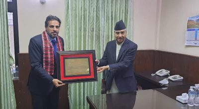 नेपाली फुटबल टोलीका मुख्य प्रशिक्षक अल्मुताइरी प्रधानमन्त्री देउवाद्वारा सम्मानित