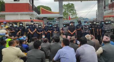 गण्डकीमा प्रदेश प्रमुखको कार्यालय अघि विपक्षी ३१ सांसद धर्नामा