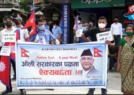 लकडाउन उल्लंघन गर्दै प्रधानमन्त्री ओलीको पक्षमा प्रदर्शन