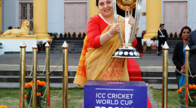 विश्वकप क्रिकेट ट्रफी राष्ट्रपतिको हातमा