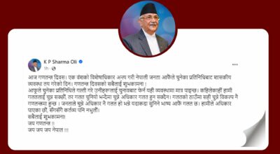 समृद्ध नेपाल निर्माणको सामूहिक प्रयासको प्रतिफल गणतन्त्र : प्रधानमन्त्री