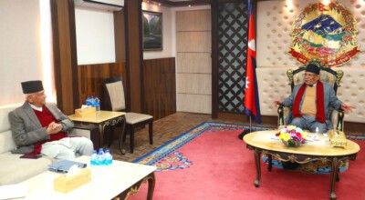 एमाले अध्यक्ष ओली र रास्वपा सभापति लामिछानेबीच भेटवार्ता