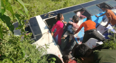 रामेछापको भिरपानीमा बस दुर्घटना, १२ जना घाईते
