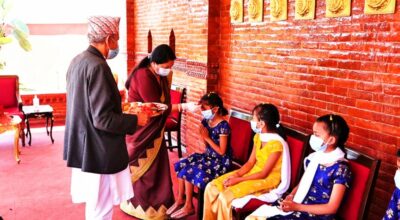 राष्ट्रपतिद्वारा गुरूहरूको हातबाट टीका ग्रहण (तस्बिरहरु)