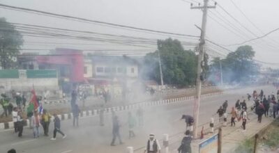 कोशी नामाकरणको विरोधमा प्रदर्शन, प्रदर्शनकारीले तोडे निषेधित क्षेत्र
