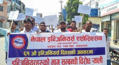 मुख्यमन्त्री यादवको राजीनामा माग्दै जनकपुरधाममा इन्जिनियरहरुको प्रदर्शन
