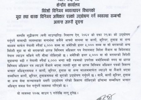 ५ हजारभन्दा बढि रकम बोकेर विदेश जाँदै हुनुहुन्छ ? अाजदेखि सम्पति सुद्दिकरणले समात्छ