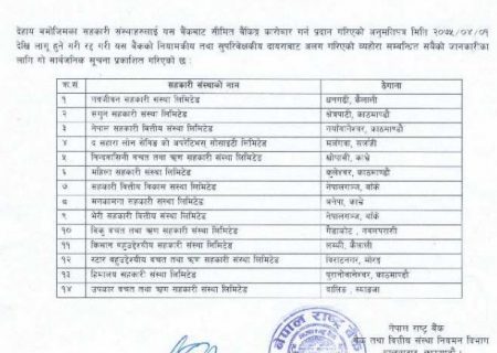 १५ वटा सहकारीले अाजदेखि सीमित बैंकिङ कारोबार गर्न नपाउने
