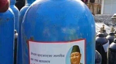 अनुदानको अक्सिजन सिलिण्डरमा वनमन्त्रीको प्रचार, औषधिका प्याकेटमा समेत मन्त्रीकै तस्वीर