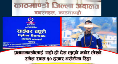 प्रधानमन्त्रीविरुद्ध जथाभाबी लेख्ने रमेश रावत ५० हजार धरौटीमा रिहा