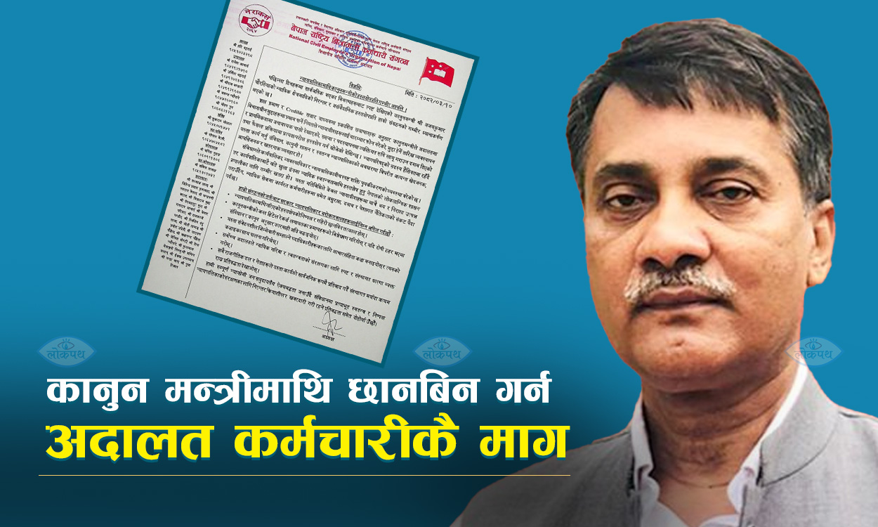 काठमाडौं । न्यायपालिकामाथि हस्तक्षेप गरेको भन्दै सर्वोच्च अदालतकै कर्मचारीले कानुन मन्त्री अजय कुमार चौरसियामाथि छानबिन…