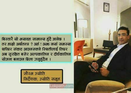 आयातलाई निरुत्साहन गर्दै देशमा रोजगारी सिर्जना गर्न सकिए कोरोनाको कारण अर्थतन्त्र धरासायी बन्दैन : सौरभ ज्योति