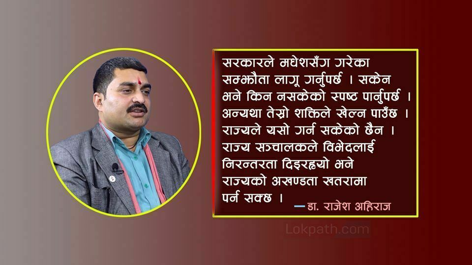 मधेस केन्द्रित दलका नेताहरुको विचार, कार्यशैली स्वभावसँग म परिचित छु । मधेसको समस्या मधेसीमात्रको समस्या…