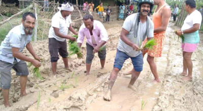 महोत्तरीमा युवाले हिलाम्य सडकमै रोपे धान