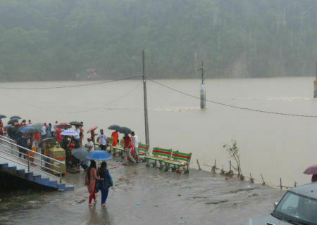 त्रिशूली नदीमा बढ्यो बहाव, पुलमाथि बग्न थाल्यो पानी