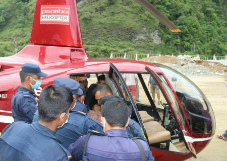 बारेकोटमा राहत सामग्री बोकेर पुग्यो हेलिकप्टर