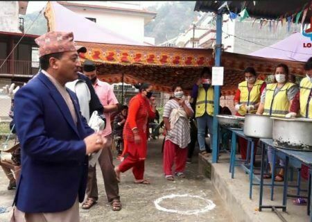 ललितपुरमा सामुहिक भोजन गराइँदै