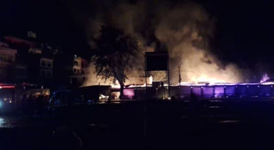 दमौलीको मुख्यचोकका सटरमा आगलागी, तीन घण्टापछि नियन्त्रणमा
