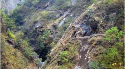 गोरखाको रुन्चेतगाउँ पुग्न भिर खोपेर झोलुङ्गे पुल बनाइँदै