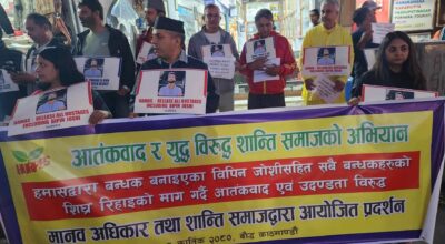 हमासको आतंक र इजरायलको बर्बरता विरुद्ध काठमाडौंमा प्रदर्शन