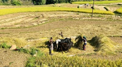 भक्तपुरका किसानलाई धान भित्र्याउन चटारो