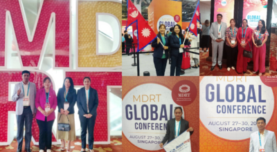 नेपाल लाइफका अभिकर्ताले सिंगापुरमा आयोजित एमडिआरटी कन्फिरेन्समा फहराए नेपालको झण्डा