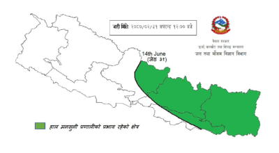 नेपालमा मनसुन भित्रियो : मौसम पूर्वानुमान महाशाखा