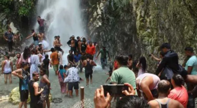 गर्मी बढेपछि महभिर झरनामा पर्यटकको घुइँचो