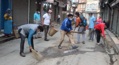 ठमेल सरसफाइमा जुटे व्यवसायी र घरधनी