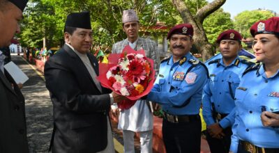 तस्बिरमा हेर्नुहोस् गृहमन्त्री श्रेष्ठको प्रहरी प्रधान कार्यालयको निरीक्षण