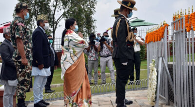 राष्ट्रपति भण्डारीद्वारा तुलाराम पाँडेको तस्बिरमा माल्यार्पण