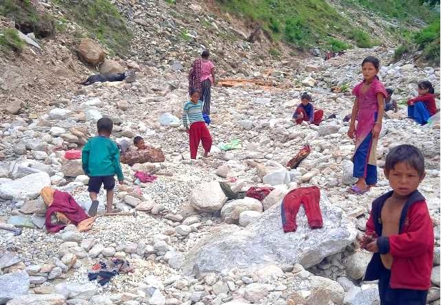 मुगु । कालो फुर्के कपाल, निलो स्विटर, हातमा फलामे हतौडा, खोलाको वरपर गिट्टीका थुप्रो, पहेँला,…