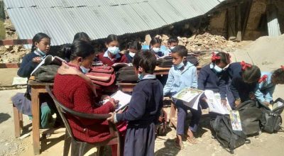 खुला चौरमा बसेर पढ्न बाध्य जुम्लाका विद्यार्थी