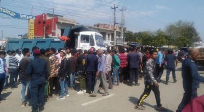 ललितपुरको सातदोबोटो-चापागाउँ सडक स्थानीयद्वारा अवरुद्ध