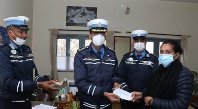 मिर्गौलापीडित प्रहरी जवान खत्रीलाई ट्राफिक प्रहरीको पौने चार लाख सहयोग