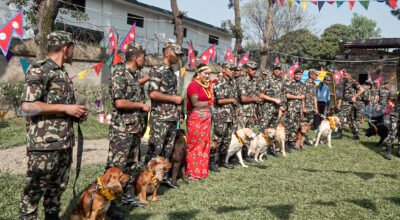 सेनाको भैरव वाहन गुल्ममा कुकुर तिहार (फोटोफिचर)