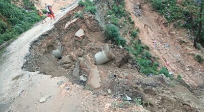 पहिरोको कारण सडक भत्किदा पैदलयात्रिलाई समेत आवतजावत बन्द