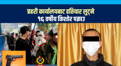 प्रहरी कार्यालय बगरबाट हतियार लुट्ने १६ वर्षीय किशोर पक्राउ