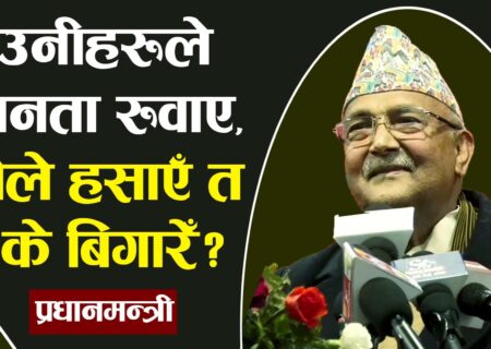 प्रधानमन्त्रीको त्यो भाषण: बाबुरामदेखि योगेशसम्मलाई ‘सटायर’, लाइनपिच्छे हाँसो र ताली (भिडियो)