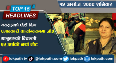 भिडियाेमा हेर्नुहाेस् आजका लोकपथ टप फिप्टिन हेडलाइन्स