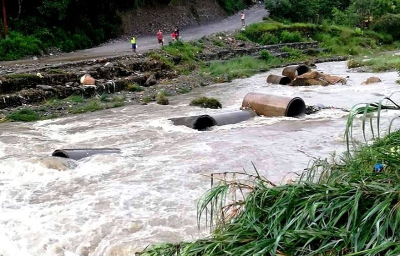ठूला यातायातका साधनलाई नदीमा ह्युमपाइप राखेर वारपार गरिएकामा आइतबार रातिको बाढीले ह्युमपाइप बगाएको हो ।