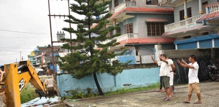 आफ्नो घरले सडकलाई छोएपछि मेयर चौधरीले डोजर लगाएर पर्खाल भत्काएका हुन् ।