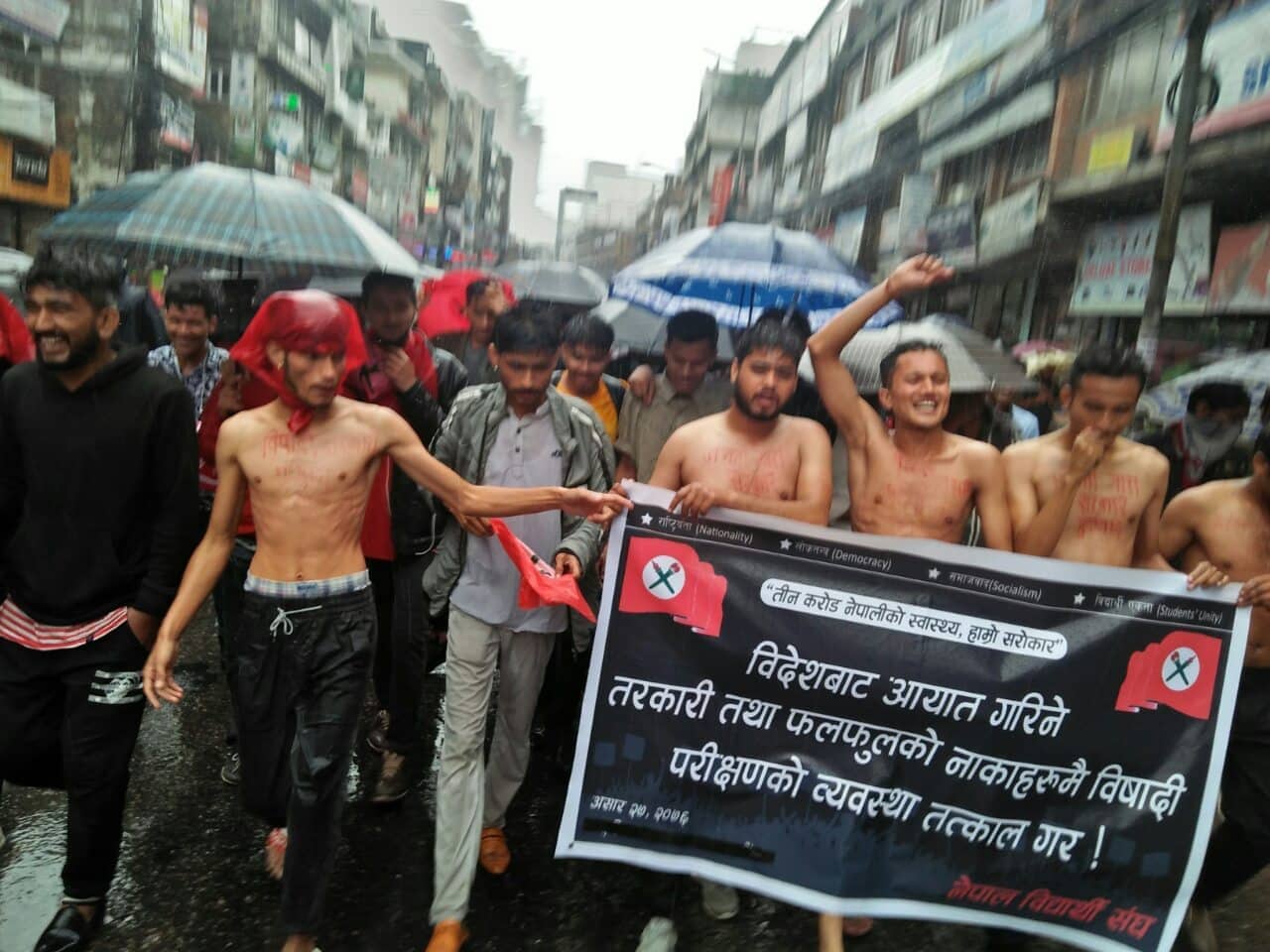 सरकारले तरकारी र फलफूलमा हुने विषादी परीक्षण गर्ने कार्यबाट पछि हटेको विरोधमा शुक्रबार दिउँसो नेविसंघले विरोध प्रदर्शन गरेको हो ।