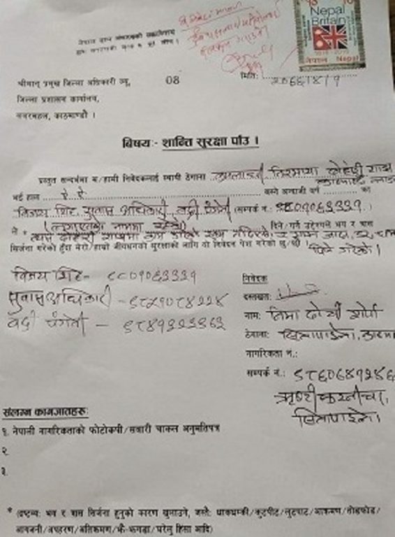 सितापाईलाका निमा दोर्ची शेर्पाले बुधबार जिल्ला प्रशासन कार्यालय काठमाडौंमा गायक पंगेनी, उनका साथीहरु विजय सिंह र सुवास अधिकारीले ज्यान मार्ने धम्की दिएको भन्दै उजुरी दर्ता गराएका हुन् ।