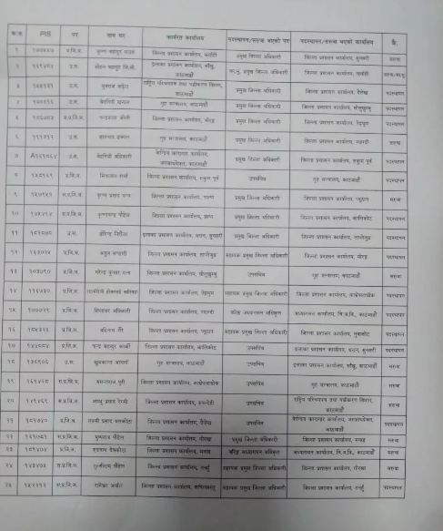 सर्लाही प्रमुख जिल्ला अधिकरी कृष्णबहादुर राउतलाई सुनसरीमा सरुवा गरिएको छ। त्यस्तै कृष्णप्रसाद पन्थलाई जिल्ला प्रशासन कार्यालय प्युठान पुर्याएको छ।