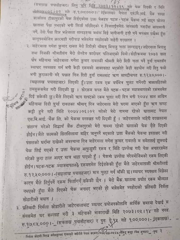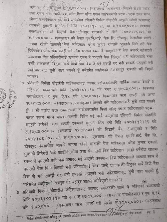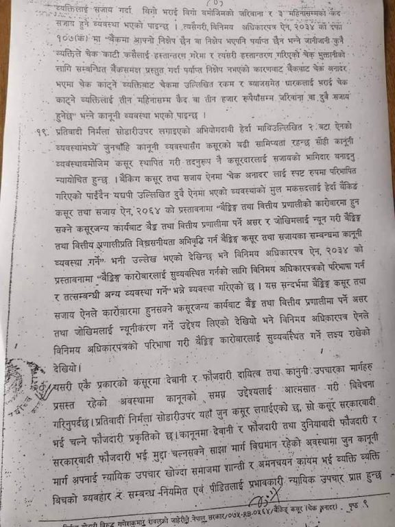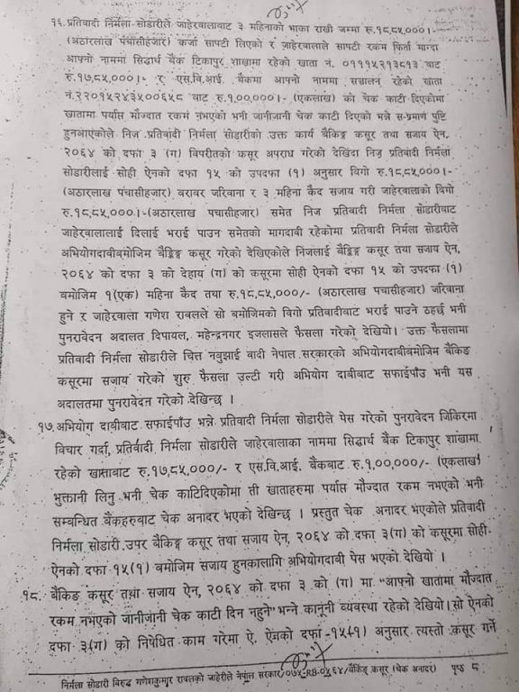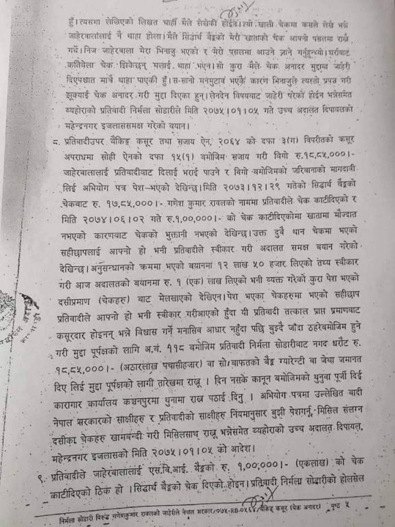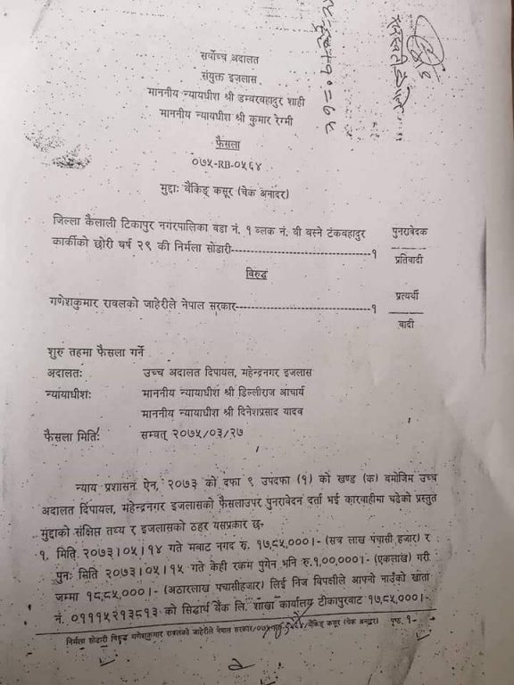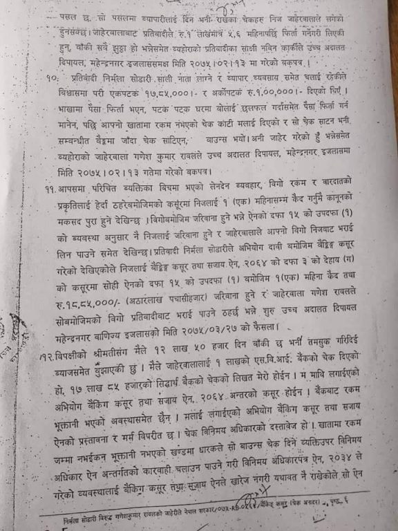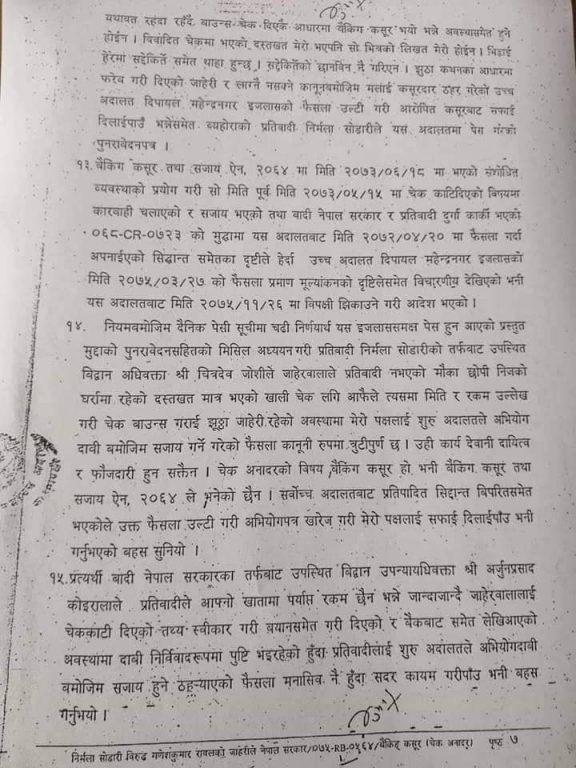 सर्वोच्चका न्यायाधीश डम्बरबहादुर शाही र कुमार कार्कीको इजलाशले चेक बाउन्ससम्बन्धि एक मुद्दामा यस्तो फैसला सुनाएको हो ।