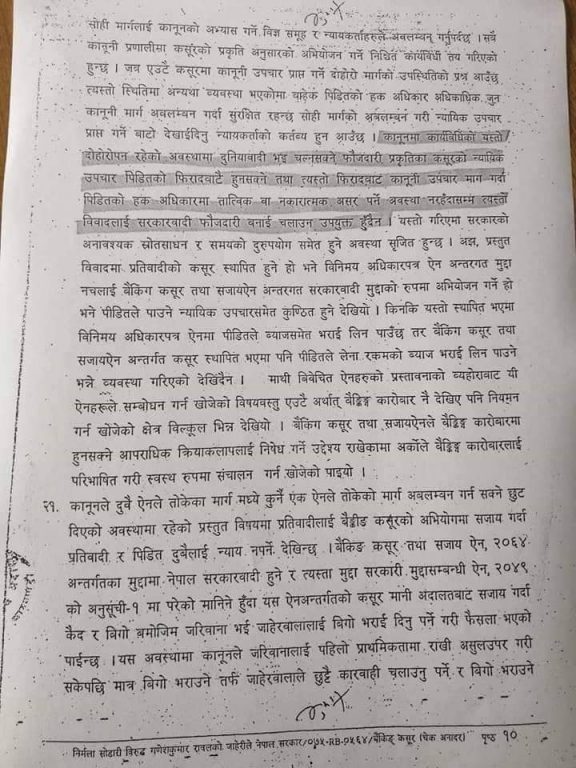 त्यस्तै फैसलामा थप लेखिएको छ, “कानुनमा कार्यविधिको यस्तो दोहोरोपन रहेको अवस्थामा दुनियावादी भई चल्न सक्ने फौजदारी प्रकृतिका कसुरको न्यायिक उपचार पीडितको फिरादबाटै हुन सक्छ। हेर्नुहोस् (पूर्ण पाठसहित) _ प्रतिकात्मक तस्वीर गूगलबाट