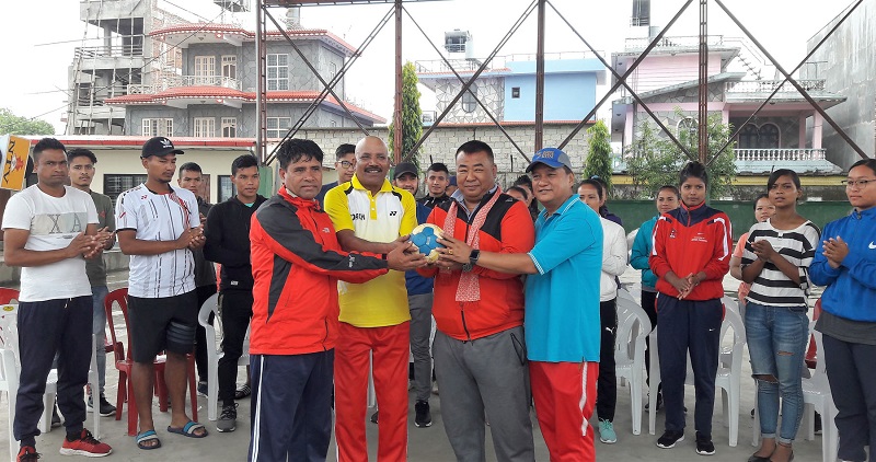 राष्ट्रिय खेलकूद परिषद्का सदस्य राजेश गुरुङले प्रशिक्षकद्वय अरुणलाल कर्ण र टेकबहादुर विश्वकर्मालाई बल हस्तान्तरण गरी बन्द प्रशिक्षणको शुभारम्भ गर्नुभएको हो । उक्त प्रशिक्षणमा परिषद्का सदस्य गुरुङले खेलाडीलाई शुभकामना दिनुहुँदै राष्ट्रिय गौरव बढाउन ह्याण्डबल खेलले महत्वपूर्ण भूमिका निर्वाह गर्ने बताउनुभयो ।