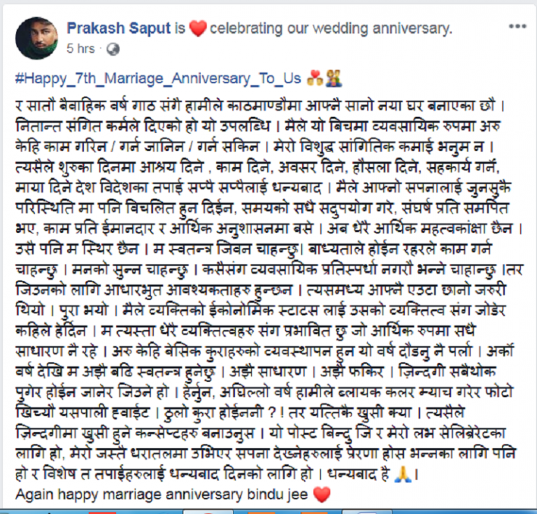 सातौं बैवाहिक वर्षगाठको उपलक्ष्यमा सपुतले नयाँ घरमा बसाई सर्दै गर्दाको तस्विर मार्फत आफ्ना दर्शक, स्रोता, शुभचिन्तक माझ शेयर गर्नुभएको हो ।
